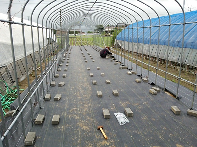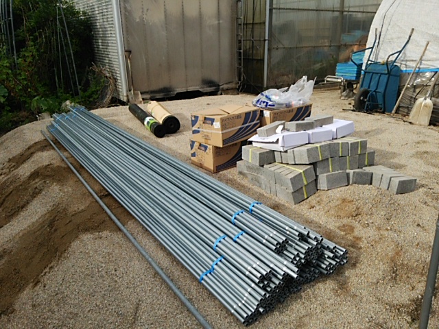 借りた2トントラックで、発注していた資材を引取りに行ってきました。 発注先は、全国展開中のコメリさんです。 福岡で、名の知れたホームセンターといえば、 グッディさん ナフコさん ホームワイドさん コメリさん 独自調査によると、農業資材はコメリさんが一番安いと思う♫ φ22x4m 200本 コンクリートレンガ 130個 パイプをつなぐ金具 数百個 防草シート 1.5mx50m 1mx100m その他 コメリさんがいくら安いと言っても、 うん十万円ナーリー(涙) 防草シートと敷き、コンクリートレンガを配列通りに置いていきます。 小雨が降ったり止んだり。 カッパでの作業は蒸し暑く辛いです。。。