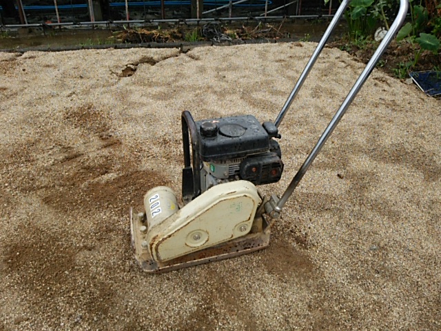 これは、土盤や舗装時に狭い範囲を振動で押し固める機械です。