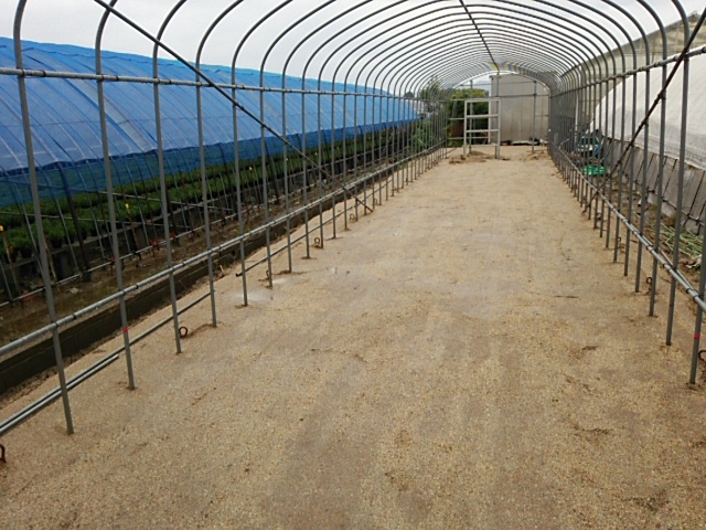 法面はプレートにロープを付けて腰に回して斜めに散歩させます。