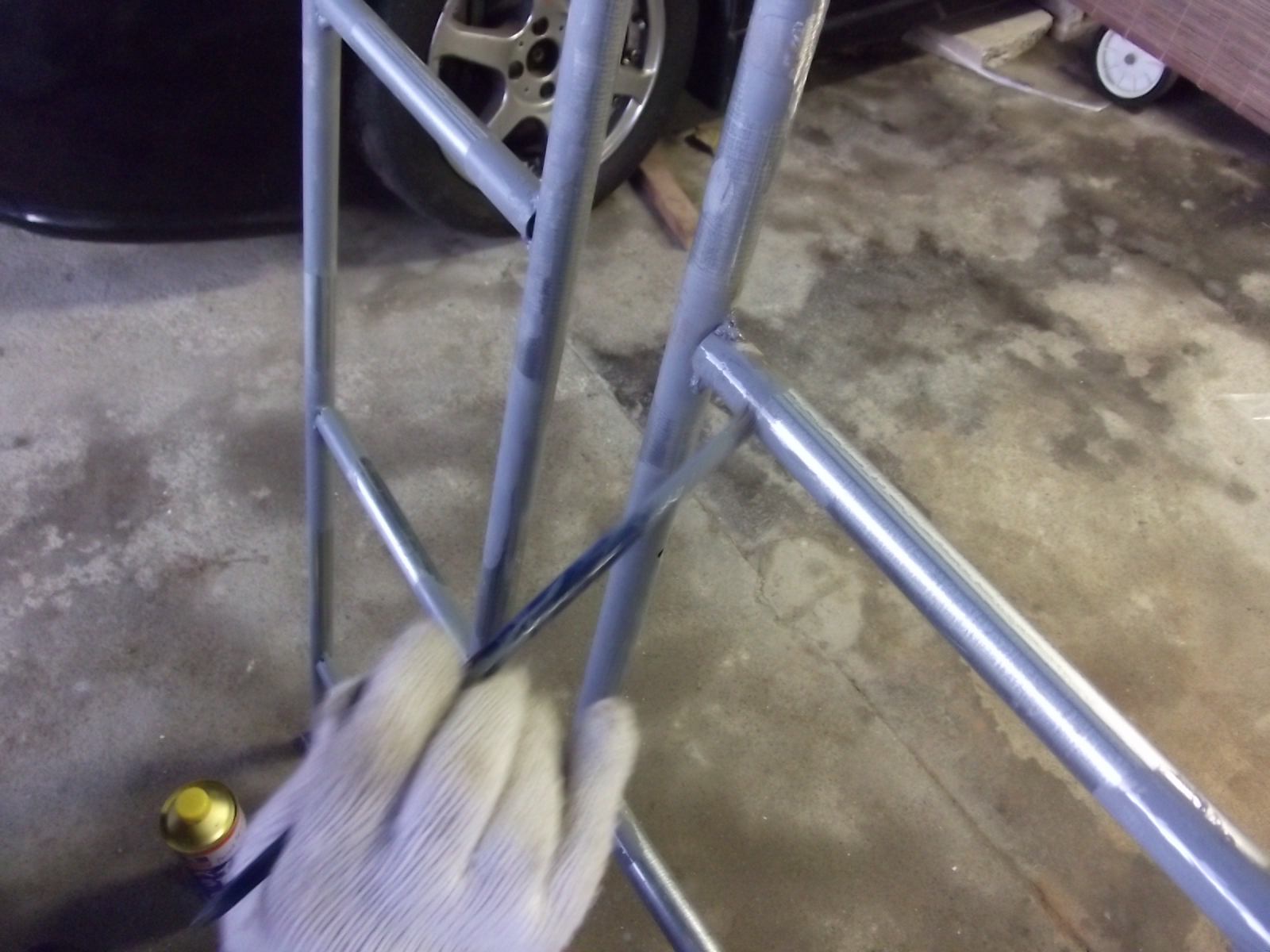 ビニールハウス用パイプアタッチメントを使えばいいけど、丈夫にするため溶接してます。